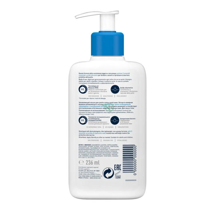 لوسیون صورت و بدن سراوی پوست را به مدت 24 ساعت آبرسانی عمیق کرده و به بازیابی سطح محافظ پوست کمک میکند. این کرم بافت نرم و فرمولاسیون غنی شده با هیالورونیک اسید و سرامید های ضروری را دارد. سرامید ضروری (1، 3 و 6) به آبرسانی و بازیابی سد محافظ پوست بدن کمک می کند.اسید هیالورونیک به حفظ رطوبت طبیعی پوست کمک می کند. به کارگیری این فرمولاسیون ویژه پوستی شاداب و با طراوت را برای شما به ارمغان می آورد.